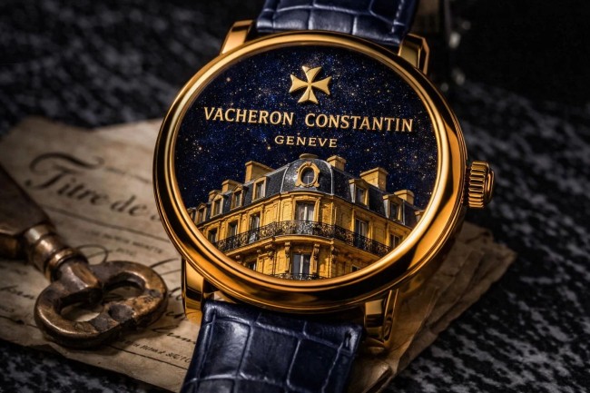 Image générée par intelligence artificielle. Cette montre n'existe pas. Du moins, pas encore. Si les équipes de Vacheron Constantin tombent sur cet article et souhaitent nous proposer une meilleure illustration, voire une Métiers d'Art dédiée à l'immobilier, nous sommes naturellement disponibles pour toute collaboration créative. Nous avons les adhérents. Ils ont les montres. Il doit bien y avoir un accord possible.