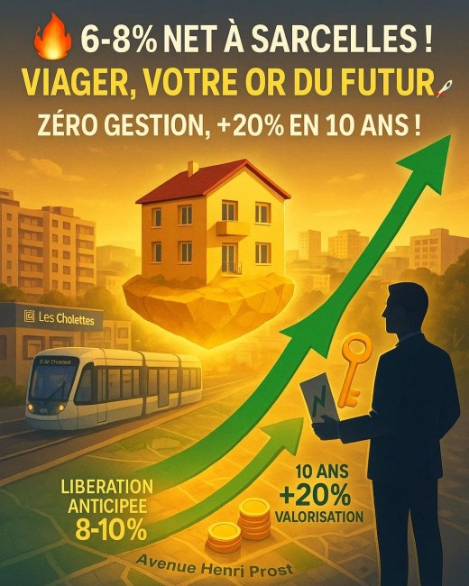 Pour vous, investisseur avisé (40-65 ans, patrimoine 200K€-1M€), c'est l'opportunité en or : rendement net de 6-8%, zéro gestion locative, et une valorisation qui suit le Grand Paris Express. Pendant que l'inflation grignote vos livrets A, ce viager discret à 30 minutes de Paris devient LA pépite que tout le monde ignore - mais pas vous !