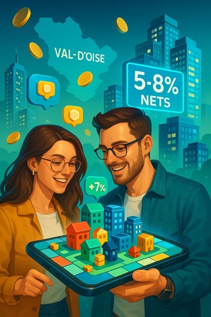 Conclusion Factuelle : L'immobilier direct dans le Val-d'Oise affiche le meilleur rendement brut (8,2%) mais nécessite 165 000€. Les plateformes gamifiées offrent 7% brut avec seulement 50 000€, soit un meilleur ratio accessibilité/rendement que les SCPI (4,7% brut).